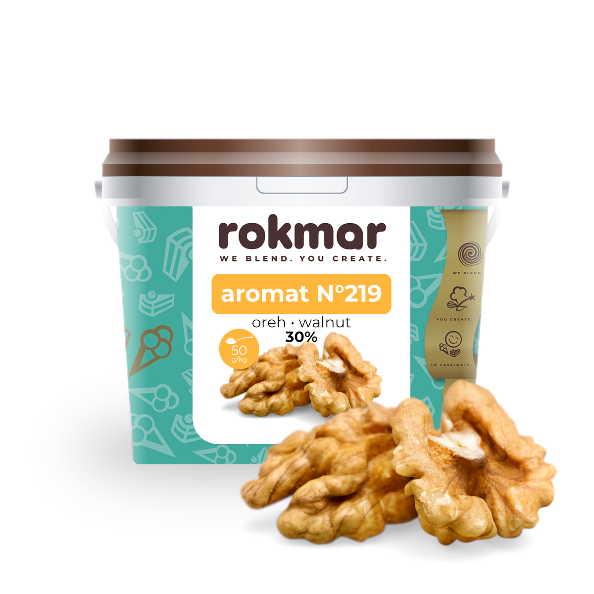 Aromat v pasti za pripravo mlečnega sladoleda z okusom oreha. Vsebuje 30 % orehove paste.