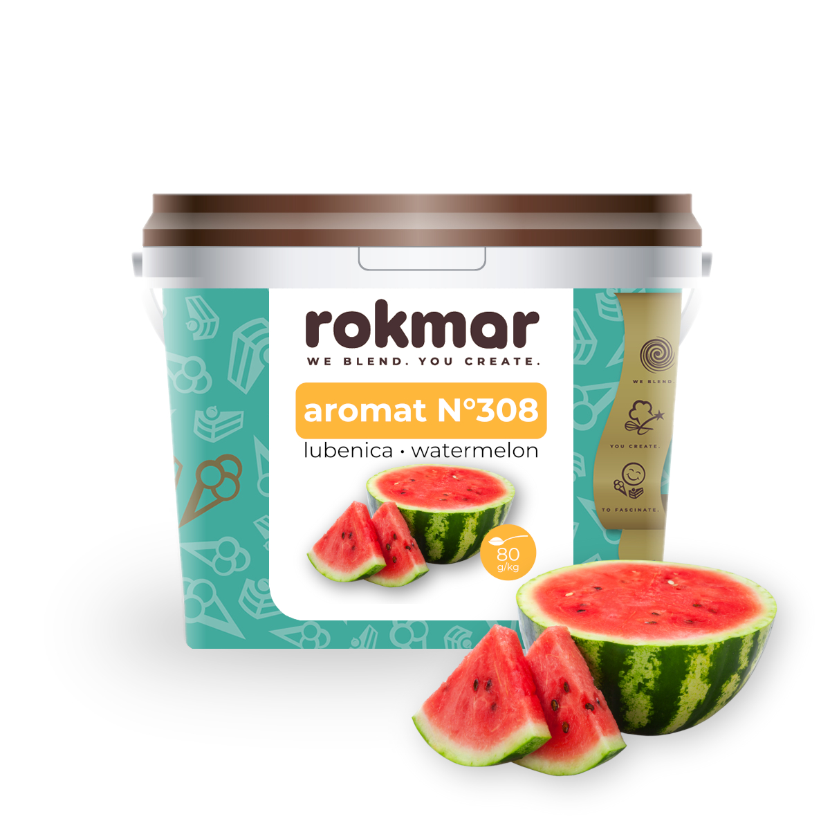 Aromat v pasti z osvežilnim okusom lubenice za sladoled, ki v vročih poletnih dneh očara prav vsakogar. Vsebuje 30 % sadnega deleža.