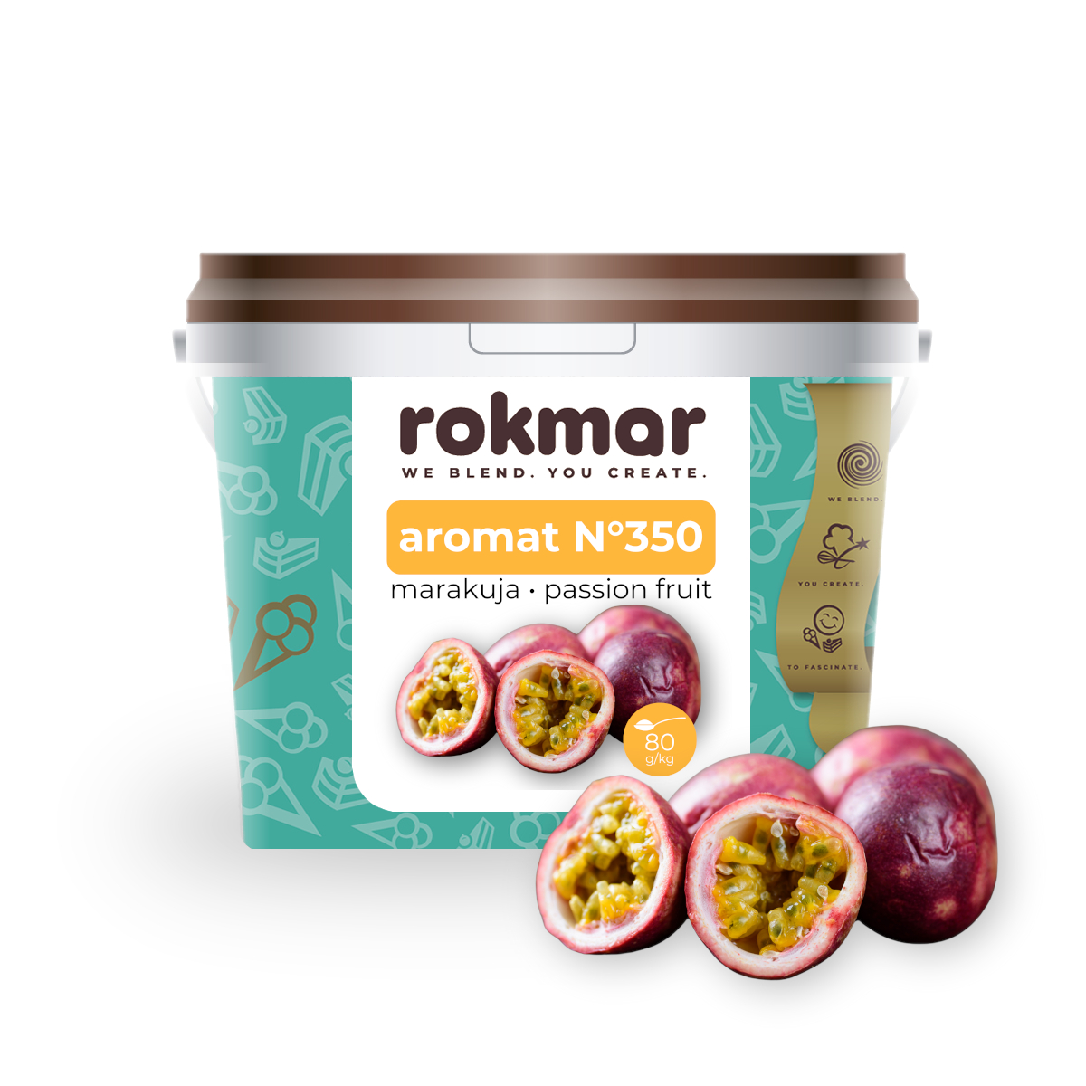 Aromat v pasti iz sladke marakuje za sladoled intenzivne oranžne barve in unikatnega okusa. Vsebuje 30 % sadja s semeni.