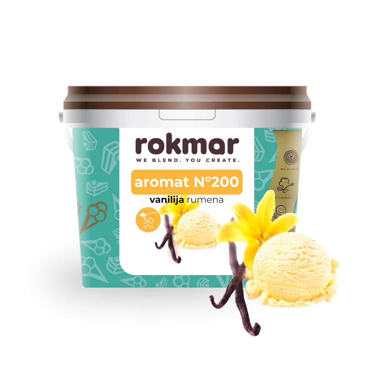 Aromat v pasti za pripravo mlečnega sladoleda, slaščičarskih krem, bistkvitov, rumene barve z okusom klasične slaščičarske vanilije.
