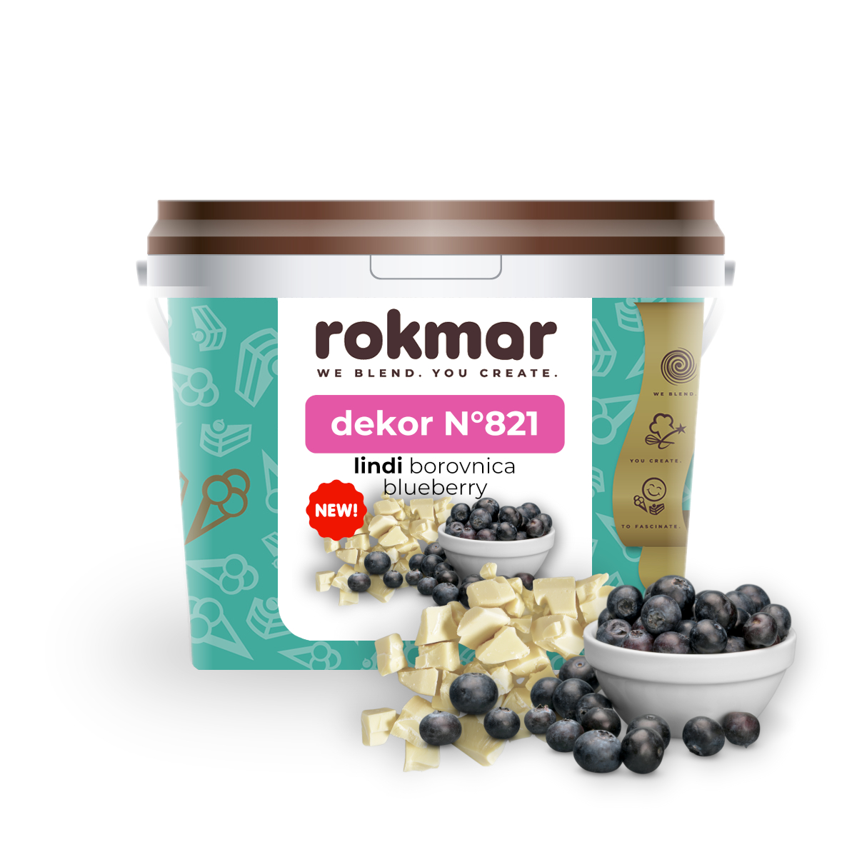 Dekorativni gladek preliv iz bele čokolade in borovnic vijolične barve za dekoracijo sladolednih banjic in obogatitev okusa palačinkam, kremam in ostalim slašicam.