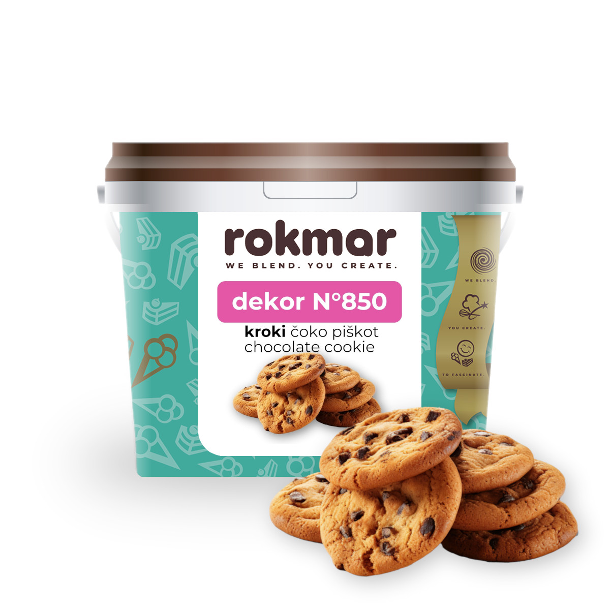 Dekorativni čokoladni preliv s koščki hrustljavih piškotkov za obogatitev okusa sladoleda in slaščic.