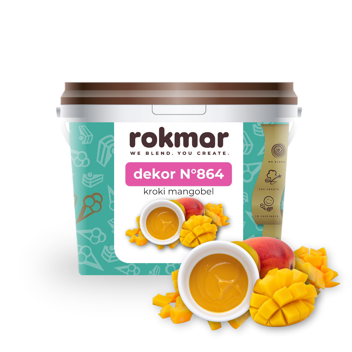 Mangov čokoladni preliv z dodanimi hrustljavimi koščki manga.