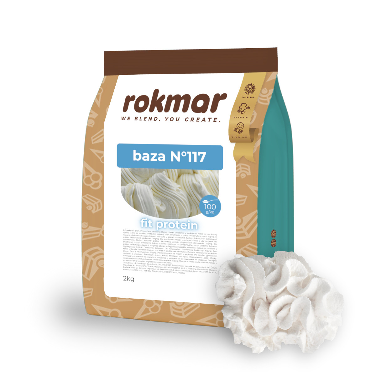 Baza z višjim deležem proteinov, fruktozo in maltodekstrinom.