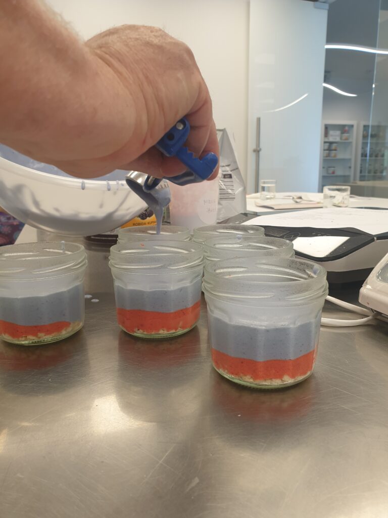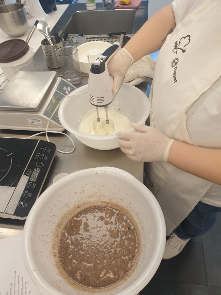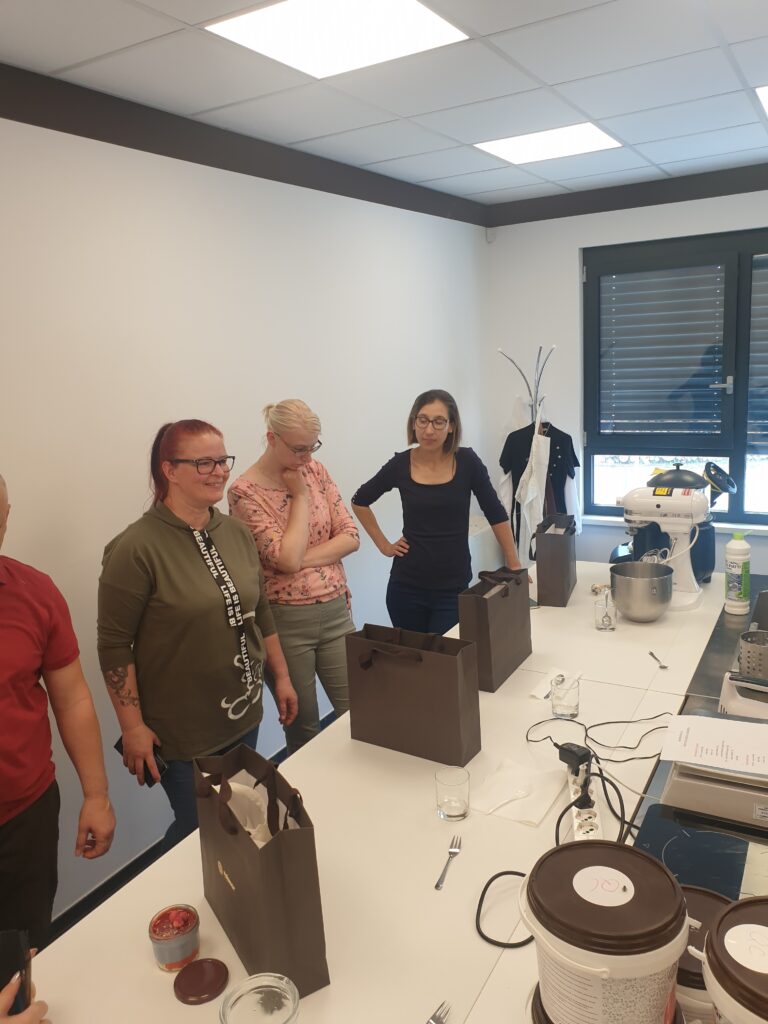 Strankam smo pokazali, kako se pripravijo torte in sladice v kozarčkih, kar je primerno tudi za tiste kavarne in slaščičarne, ki nimajo lastne pečice. Vsi udeleženci so prejeli recept za dva okusa tortic, ki smo jih nato skupaj pripravili.